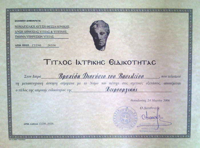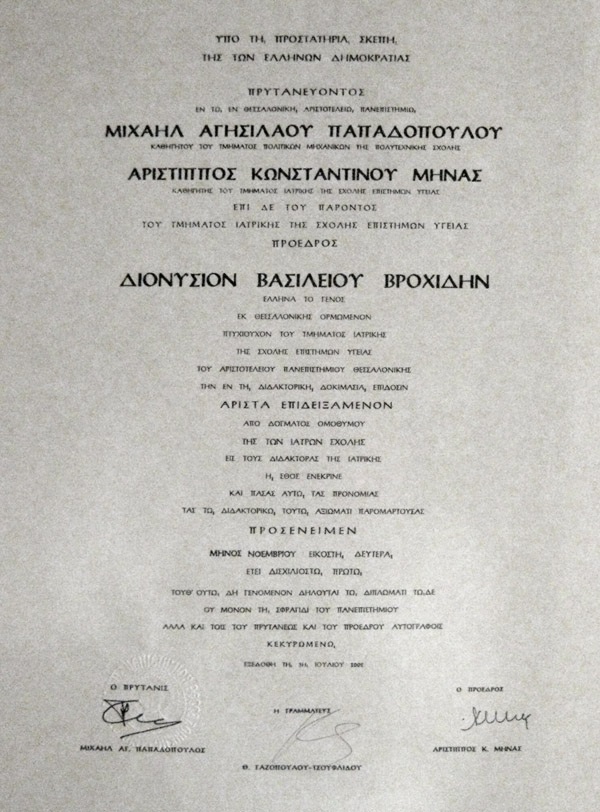 ΔΙΟΝΥΣΗΣ Β. ΒΡΟΧΙΔΗΣ, MD, PhD, FACS, FRCSC