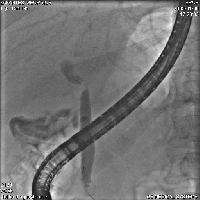 Πρόκειται για άνδρα ασθενή 62 ετών, ο οποίος υποβλήθηκε σε αξονική τομογραφία (εικόνα 1) για άτυπα γαστρεντερικά συμπτώματα και υπερχολερυθριναιμία. Διαπιστώθηκε μάζα μεγέθους 2,5 cm στον αριστερό (τμήμα 4) λοβό του ήπατος, η οποία εξορμούνταν από το χοληφόρο δένδρο, καταλάμβανε τη συμβολή του δύο ηπατικών πόρων, καθώς και το κεντρικό στέλεχος του αριστερού ηπατικού πόρου (χολαγγειοκαρκίνωμα τύπου Klatskin IIIB). Διενεργήθηκε ERCP (εικόνα 2) για τοποθέτηση παροχετευτικού stent και διόρθωση της υπερχολερυθριναιμίας. Υποβλήθηκε σε τυπική αριστερή ηπατεκτομή (τμήματα 1, 2, 3 και 4), εκτομή του εξωηπατικού χοληφόρου δένδρου έως τη Β' διαίρεση του δεξιού ηπατικού πόρου (εικόνα 3), καθώς και σε πλήρη λεμφαδενικό καθαρισμό του ηπατοδωδεκαδακτυλικού συνδέσμου (st 12A και st 12B). Η εντερική αποκατάσταση διενεργήθηκε με ηπατικονηστιδοστομία και με έλικα Roux μήκους 60 cm (εικόνα 4). Μετά την 4η μετεγχειρητική εβδομάδα, δόθηκε χημειοθεραπεία βασιμένη στο gemcitabine. Ο ασθενής παραμένει ελεύθερος νόσου.