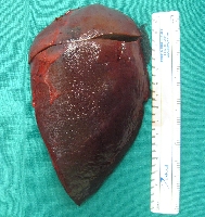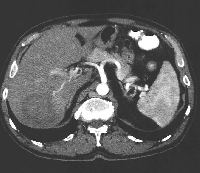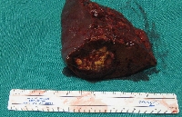 Πρόκειται για άνδρα ασθενή 50 ετών, ο οποίος υποβλήθηκε σε αξονική τομογραφία άνω κοιλίας στα πλαίσια διερεύνησης πυρετού αγνώστου αιτιολογίας. Βρέθηκε μάζα στο 6ο και 7ο ηπατικό τμήμα (εικόνα 1). Δε διαπιστώθηκε κίρρωση. Η διερεύνηση για πιθανή πρωτοπαθή εστία εκτός ήπατος ήταν αρνητική. Τέθηκε η διάγνωση της πρωτοπαθούς ηπατικής μάζας (HCC vs CCa vs άλλη). Οδηγήθηκε στο χειρουργείο και ύστερα από διενέργεια διεγχειρητικού υπερήχου για καθορισμό του επιπέδου ηπατικής διατομής (εικόνα 2), υποβλήθηκε σε δεξιά πλάγια ηπατεκτομή (εικόνα 3). Το ηπατικό κολόβωμα (εικόνα 4) υπολογίστηκε στο 72% του αρχικού μεγέθους του οργάνου. Στο παρασκεύασμα (εικόνα 5) βρέθηκε μάζα μεγέθους 6,5 εκατοστών με ιστολογικά χαρακτηριστικά φλεγμονώδους ψευδοόγκου. Ο ασθενής έλαβε εξιτήριο την 6η μετεγχειρητική ημέρα. Έκτοτε παραμένει ασυμπτωματικός (απύρετος).