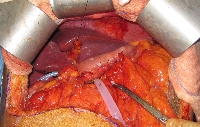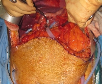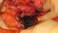 Πρόκειται για άνδρα ασθενή 41 ετών που διαπιστώθηκε να πάσχει από επιμολυσμένο παγκρεατικό νέκρωμα (infected Walled-Off Necrosis – WON), το οποίο αναπτύχθηκε ως μετεξέλιξη επεισοδίου χολολιθιασικής νεκρωτικής παγκρεατίτιδας. Η παγκρεατική νέκρωση (ποσοστό > 70%) προκαλούσε στένωση της πυλαίας με συνοδό διάταση της στεφανιαίας φλέβας (εικόνα 1). Υποβλήθηκε στις νεκροσεκτομή, επιπλοοπλαστική και χολοκυστεκτομή. Κατά τη διάρκεια της επέμβασης διαπιστώθηκε νέκρωση στην κεφαλή, το σώμα και την ουρά του παγκρέατος (εικόνα 2). Η περιοχή εκπλύθηκε με τη χρήση Simpulse Suction/Irrigation System (Stryker) και 6 lt RL (εικόνα 3). Τοποθετήθηκαν παροχετεύσεις στον ελάσσονα επιπλοϊκό θύλακο, στη δεξιά και αριστερή κολική αύλακα (εικόνα 4). Πραγματοποιήθηκε επιπλοοπλαστική κατά Farkas (εικόνα 5). Τα παρασκευάσματα (παγκρεατικά νεκρώματα, τμήμα του μείζονος επιπλόου και χοληδόχος κύστη) παρουσιάζονται στην εικόνα 6. Ο ασθενής έλαβε εξιτήριο τη 18η μετεγχειρητική ημέρα, στιζόμενος κανονικά, χωρίς πόνο και με φυσιολογικές εργαστηριακές τιμές (λευκά αιμοσφαίρια, αμυλάση ορού, κτλ).