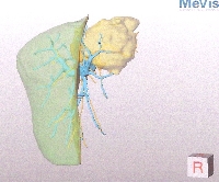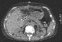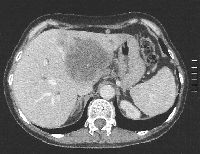 Πρόκειται για γυναίκα ασθενή 56 ετών η οποία, στα πλαίσια διερεύνησης αποφρακτικού ικτέρου, διαπιστώθηκε ότι έπασχε από μονήρες ενδοηπατικό χολαγγειοκαρκίνωμα μεγέθους 7,5 cm που οποίο καταλάμβανε τα τμήματα 1, 2, 3, 4a, 4b, 5 (μερικώς) και 8 (μερικώς), διηθούσε την αριστερή και τη μέση ηπατική φλέβα, είχε προκαλέσει θρόμβωση του αριστερού κλάδου της πυλαίας φλέβας και εφίππευε στο δεξιό κλάδο της πυλαίας φλέβας (εικόνα 1). Η άρση της χολόστασης προεγχειρητικά επιτεύχθηκε με ERCP και τοποθέτηση stent δεξιού χοληδόχου πόρου. Πραγματοποιήθηκε προεγχειρητική ηπατική ογκομέτρηση με ανάλυση MeVis (εικόνα 2). Διεγχειρητικά εξασφαλίστηκε η δυνατότητα ολικού αγγειακού αποκλεισμού (εικόνα 3). Διενεργήθηκε αριστερή εκτεταμμένη ηπατεκτομή. Ο όγκος αφαιρέθηκε πλήρως, με άθικτη κάψα (εικόνα 4). Το ηπατικό υπόλειμμα ανήλθε στο 31% του αρχικού όγκου του οργάνου (εικόνα 5). Η ογκομετρική CT την 4η μετεγχειρητική εβδομάδα ήταν ικανοποιητική (εικόνα 6). Η ασθενής πήρε εξιτήριο την 7η μετεγχειρητική ημέρα. Έλαβε μετεγχειρητική χημειοθεραπεία (GEMOX).