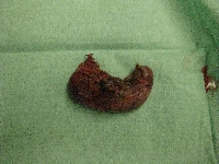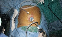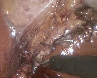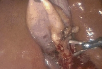 Πρόκειται για άνδρα ασθενή 46 ετών, ο οποίος υποβλήθηκε σε υπερηχογράφημα άνω κοιλίας στα πλαίσια διερεύνησης επαναλαμβανόμενων επεισοδίων επιγαστραλγίας με αντανάκλαση στη δεξιά ωμοπλάτη και τάση προς έμετο. Διαπιστώθηκε χολολιθίαση. Υποβλήθηκε σε λαπαροσκοπική χολοκυστεκτομή μονήρους οπής (SILS). Η τοποθέτηση της θύρας ενδοπεριτοναϊκής προσπέλασης έγινε, αντί στη διομφάλια, στην υπομφάλια θέση, εξαιτίας της ύπαρξης συγγενούς ομφαλικού αιμαγγειώματος (εικόνα 1). Χρησιμοποιήθηκαν εύκαμπτα λαπαροσκοπικά εργαλεία (εικόνα 1) με την τεχνική της διασταύρωσης των χειρών. Ο θόλος της χοληδόχου κύστης αναρτήθηκε στο κοιλιακό τοίχωμα με ράμμα. Πραγματοποιήθηκε πλήρης παρασκευή του τριγώνου του Calot (εικόνα 2) και κατόπιν ακολούθησε η διατομή του κυστικού πόρου και της κυστικής αρτηρίας (εικόνα 3). Η αποκόλληση της χοληδόχου κύστης διενεργήθηκε με τη χρήση hook διαθερμίας (εικόνα 4). Το παρασκεύασμα ανακτήθηκε άθικτο (εικόνα 5). Το άμεσο μετεγχειρητικό κοσμητικό αποτέλεσμα φαίνεται στην εικόνα 6. Έκτοτε ο ασθενής παραμένει ελεύθερος συμπτωμάτων.