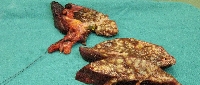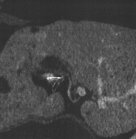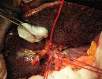 Πρόκειται για άνδρα ασθενή 70 ετών ο οποίος, στα πλαίσια διερεύνησης καθημερινών εμπύρετων επεισοδίων, διαπιστώθηκε ότι έπασχε από πολλαπλά αποστημάτια του αριστερού ηπατικού λοβού, ως συνέπεια ηπατικής λιθίασης (εικόνα 1). Επιπλέον, ο ασθενής παρουσίαζε στένωση στο διχασμό του κοινού ηπατικού πόρου (εικόνα 2) και θρόμβωση του αριστερού κλάδου της πυλαίας φλέβας. Αν και η ύπαρξη κακοήθειας δεν επιβεβαιώθηκε ιστολογικά, η ανάπτυξη χολαγγειοκαρκινώματος δεν μπορούσε να αποκλεισθεί προεγχειρητικά και έτσι ο ασθενής υποβλήθηκε σε εκτομή του χοληδόχου πόρου με λεμφαδενικό καθαρισμό (εικόνα 3) και αριστερή ηπατεκτομή με τον κερκοφόρο λοβό (εικόνα 4). Η αποκατάσταση του χοληφόρου δέντρου πραγματοποιήθηκε με τελικο-τελική ηπατικο-νηστιδική αναστόμωση (εικόνα 5) με τη χρήση οπισθοκολικής έλικας μήκους 70 cm κατά Roux en Y (εικόνα 6). Έκτοτε, ο ασθενής είναι ελεύθερος εμπύρετων επεισοδίων.