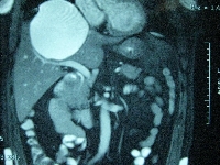 Ασθενής 61 ετών ο οποίος, στα πλαίσια διερεύνησης επιγαστραλγίας, διαπιστώθηκε ότι έπασχε από ευμεγέθη (13 cm) επικρατούσα απλή ηπατική κύστη που εδράζονταν στα ηπατικά τμήματα 4α, 5, 7 και 8 (εικόνα 1). Η κύστη παρεκτόπιζε μερικώς το δεξιό κλάδο της πυλαίας φλέβας (εικόνα 2) και εφάπτονταν με τη δεξιά ηπατική φλέβα (εικόνα 3). Ο ασθενής υποβλήθηκε σε λαπαροσκοπική (HALS) μαρσιποποίηση της ηπατικής κύστης (εικόνα 4) κατά την οποία αφαιρέθηκε > 50% του άνω και οπισθίου τοιχώματός της, μαζί με τμήμα του παρακείμενου ηπατικού παρεγχύματος (εικόνα 5). Η ταχεία ιστοπαθολογική εκτίμηση του παρασκευάσματος δεν ανέδειξε κακοήθη στοιχεία. Επιπλέον, πραγματοποιήθηκε και επιπλοοπλαστική, ύστερα από πλήρη κινητοποίηση του μείζονος επιπλόου, μεταφορά του στο δεξιό υποδιαφραγματικό χώρο και τοποθέτησή του μέσα στην υπολειμματική κυστική κοιλότητα (εικόνα 6). Ο ασθενής έλαβε εξιτήριο την 4η μετεγχειρητική ημέρα. Έκτοτε παραμένει ελεύθερος συμπτωμάτων.
