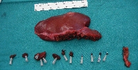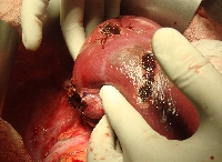 Πρόκειται για ασυμπτωματική γυναίκα ασθενή 35 ετών η οποία, στα πλαίσια διαγνωστικής γυναικολογικής λαπαροσκόπησης, διαπιστώθηκε ότι έφερε πολλαπλές ηπατικές μάζες. Η αξονική τομογραφία που ακολούθησε (εικόνα 1) ανέδειξε εμπλοκή όλων των ηπατικών τμημάτων, με τις περισσότερες βλάβες να βρίσκονται στο αριστερό ημι-ήπαρ. Διενεργήθηκε διαδερμική βιοψία της μεγαλύτερης των βλαβών που έθεσε τη διάγνωση του νευροενδοκρινούς νεοπλάσματος (0-1 μίτωση / 50 HPF και ki67 < 1%, G1). Ο έλεγχος για εύρεση πιθανής πρωτοπαθούς εστίας (MDCT κοιλίας/θώρακος, γαστροσκόπηση, κολονοσκόπηση, ενδοσκόπηση λεπτού εντέρου με καψούλα, octreotide scan) ήταν αρνητικός. Το ογκολογικό συμβούλιο αποφάνθηκε ότι πρόκειται για πρωτοπαθές πολυεστιακό νευροενδοκρινές νεόπλασμα του ήπατος. Το διεγχειρητικό υπερηχογράφημα ανέδειξε συνολικά 22 βλάβες. Για την πλήρη αφαίρεσή τους διενεργήθηκαν αριστερή ηπατεκτομή (εικόνα 2), πολλαπλές (Χ10) άτυπες μικρές δεξιές εκτομές (εικόνα 3), καθώς και μία άτυπη εκτομή του τμήματος 1 μεταξύ της πυλαίας και της κάτω κοίλης φλέβας (εικόνα 4). Το παρασκεύασμα δεικνύεται στην εικόνα 5. Η τελική παθολογοανατομική εκτίμηση του επιβεβαίωσε τα ευρήματα της πρώτηε (εικόνα 6). Η ασθενής έλαβε εξιτήριο την 7η μετεγχειρητική ημέρα. Τέθηκε σε μηνιαία αγωγή με octreotide acetate. Εξακολουθεί να είναι ελεύθερη νόσου.