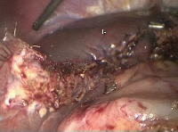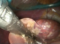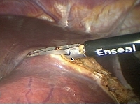 Πρόκειται για γυναίκα ασθενή 32 ετών η οποία, στα πλαίσια γυναικολογικής λαπαροσκόπησης, διαπιστώθηκε ότι έφερε στο 4ο ηπατικό τμήμα ευμεγέθη βλάβη. Η τριφασική MDCT ήπατος που ακολούθησε ανέδειξε μονήρες αδένωμα μεγέθους 5 cm σε επαφή με τον ηπατοδωδεκαδακτυλικό σύνδεσμο (εικόνα 1). Η ασθενής υποβλήθηκε σε λαπαροσκοπική (HALS) εκτομή του ηπατικού τμήματος 4b και σε χολοκυστεκτομή (εικόνα 2). Η διατομή του ηπατικού παρεγχύματος έγινε με τη χρήση αυτορυθμιζόμενης διπολικής διαθερμίας (εικόνα 3) και αυτόματου λαπαροσκοπικού αγγειακού κοπτοπάπτη (εικόνα 4). Διενεργήθηκε συμπλησίαση της επιφάνειας διατομής με τη χρήση ραμμάτων (εικόνα 5). Το παρασκεύασμα δεικνύεται στην εικόνα 6. Η ασθενής έλαβε εξιτήριο την 3η μετεγχειρητική ημέρα.
