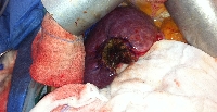 Πρόκειται για γυναίκα ασθενή 75 ετών που είχε υποβληθεί πριν από 28 έτη σε δεξιά ριζική τροποποιημένη μαστεκτομή για καρκίνωμα των πόρων του μαστού. Επιπλέον, διαγνώσθηκε προ εικοσαετίας με HBV λοίμωξη, η οποία έχει οδηγήσει σε καλά αντιρροπούμενη κίρρωση (MELD 8). Στα πλαίσια του τακτικού απεικονιστικού ελέγχου του ήπατος διαπιστώθηκε νέα μονήρης βλάβη στο 5ο ηπατικό τμήμα (εικόνα 1), η οποία ταυτοποιήθηκε με διαδερμική βιοψία ως μετάσταση από καρκίνο του μαστού. Ακολούθησε PET-CT που δεν ανέδειξε άλλες μεταστατικές εστίες. Σε ογκολογικό συμβούλιο προκρίθηκε η χειρουργική επέμβαση έναντι της διαδερμικής MW κατάλυσης, εξαιτίας της επιφανειακής εντόπισης της μετάστασης. Η ασθενής υποβλήθηκε σε σωστική του παρεγχύματος (parenchymal sparing) εκτομή του 5ου ηπατικού τμήματος (εικόνες 2, 3 και 4). Η επέμβαση πραγματοποιήθηκε "ανοικτά" και όχι λαπαροσκοπικά, εξαιτίας πολλαπλών και εκτεταμμένων συμφύσεων που διαπιστώθηκαν κατά τη αρχική λαπαροσκόπηση. Η ασθενής έλαβε εξιτήριο την 6η μετεγχειρητική ημέρα. Πρόκειται να λάβει μετεγχειρητική χημειοθεραπεία.