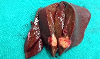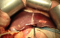 Πρόκειται για γυναίκα ασθενή 55 ετών η οποία είχε υποβληθεί σε σιγμοειδεκτομή και μετεγχειρητική χημειοθεραπεία για αδενοκαρκίνωμα του παχέος εντέρου (Τ3Ν1). Ένα έτος μετά τη σιγμοειδεκτομή, κατά τον τακτικό απεικονιστικό έλεγχο (MDCT), αναγνωρίστηκε μονήρης μεταστατική εστία στη μετάπτωση των ηπατικών τμημάτων 3 & 4b. Υποβλήθηκε εκ νέου σε χημειοθεραπεία (neoadjuvant) 6 κύκλων. Το διεγχειρητικό υπερηχογράφημα δεν ανέδειξε άλλες, πλην της ήδη γνωστής, ηπατικές μεταστάσεις (εικόνα 1). Ύστερα από ηπατική κινητοποίηση (εικόνα 2), υποβλήθηκε σε αριστερή ηπατεκτομή (εικόνες 3 & 4), με διατήρηση του κερκοφόρου λοβού (κλάδος PV1). Το ηπατικό υπόλειμμα φαίνεται στην εικόνα 5. Η ασθενής έλαβε εξιτήριο την 6η μετεγχειρητική ημέρα. Η χημειοθεραπεία (adjuvant) θα ολοκληρωθεί με άλλους 6 κύκλους.