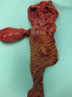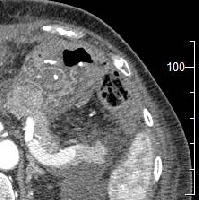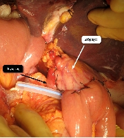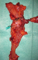 Πρόκειται για γυναίκα ασθενή 70 ετών, η οποία υποβλήθηκε σε αξονική τομογραφία για άτυπα γαστρεντερικά συμπτώματα, εμέτους και απώλεια βάρους. Διαπιστώθηκε συμπαγής μάζα του παγκρέατος, μεγέθους 3 εκατοστών, η οποία εντοπίζονταν στην κεφαλή του οργάνου και βρίσκονταν σε ικανή απόσταση από τα άνω μεσεντέρια αγγεία (εικόνα 1). Η ασθενής έλαβε 4 κύκλους προεγχειρητικής (neoadjuvant) χημειοθεραπείας (gemcitabine, cisplatine, erlotinib). Κατόπιν υποβλήθηκε σε επέμβαση Whipple's (εικόνα 2) με παγκρεατογαστροστομία (εικόνες 3, 4). Στο παρασκεύασμα (με και χωρίς αριστερή εκστροφή της χοληδόχου κύστης) φαίνεται η μάζα (εικόνες 5, 6).