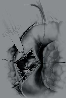 Διενέργεια μέσης εγχειρητικής τομής (εναλλακτικά διενεργείται δεξιά υποπλεύρια τομή τύπου Kocher).
