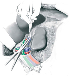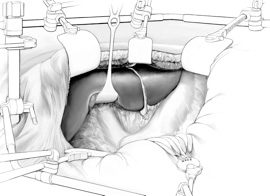 Κινητοποίηση της αριστερής (κάποιες φορές και της δεξιάς) πλευράς του ήπατος με διατομή των αντίστοιχων συνδέσμων (δρεπανοειδής, στεφανιαίος, τρίγωνος).