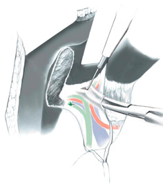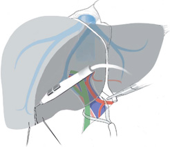 Εξω-ηπατική ανεύρεση και διατομή των προσαγωγών αγγείων των τμημάτων V και VIII (εκφυόμενων από το δεξιό πρόσθιο κλάδο των προσαγωγών ηπατικών αγγείων).