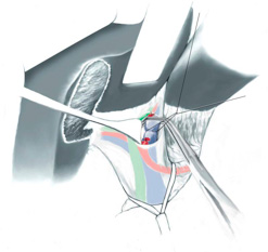 Εξωηπατική ανεύρεση και διαίρεση της αριστερής ηπατικής αρτηρίας (προσ-αγωγό αγγείο).