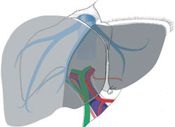 Εξωηπατική ανεύρεση και διατομή της αριστερής πυλαίας φλέβας (προσαγωγό αγγείο).